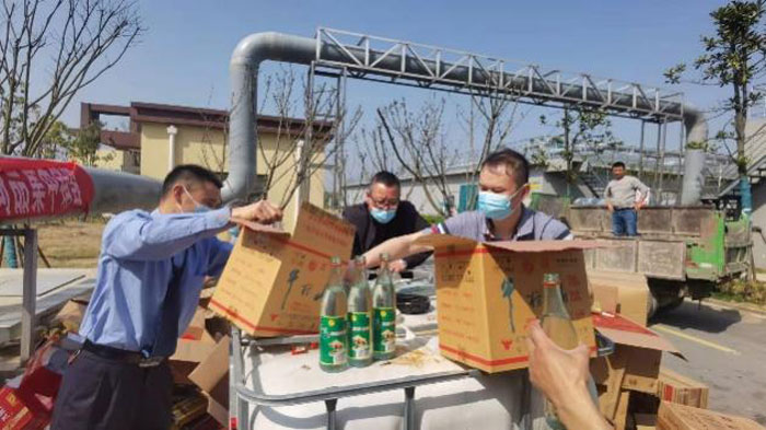 城北污水處理廠全員積極配合市場監(jiān)督管理局的銷毀行動,為保證正常生產(chǎn)不受影響,將所有“假酒”“假飲料”等進(jìn)行開瓶后倒入提前準(zhǔn)備好的儲存罐里。同時,安排化驗(yàn)室對罐中液體進(jìn)行取樣化驗(yàn),在保證各項(xiàng)出水指標(biāo)達(dá)標(biāo)的前提下,有計(jì)劃的將罐中液體作為污水進(jìn)行無害化處理。