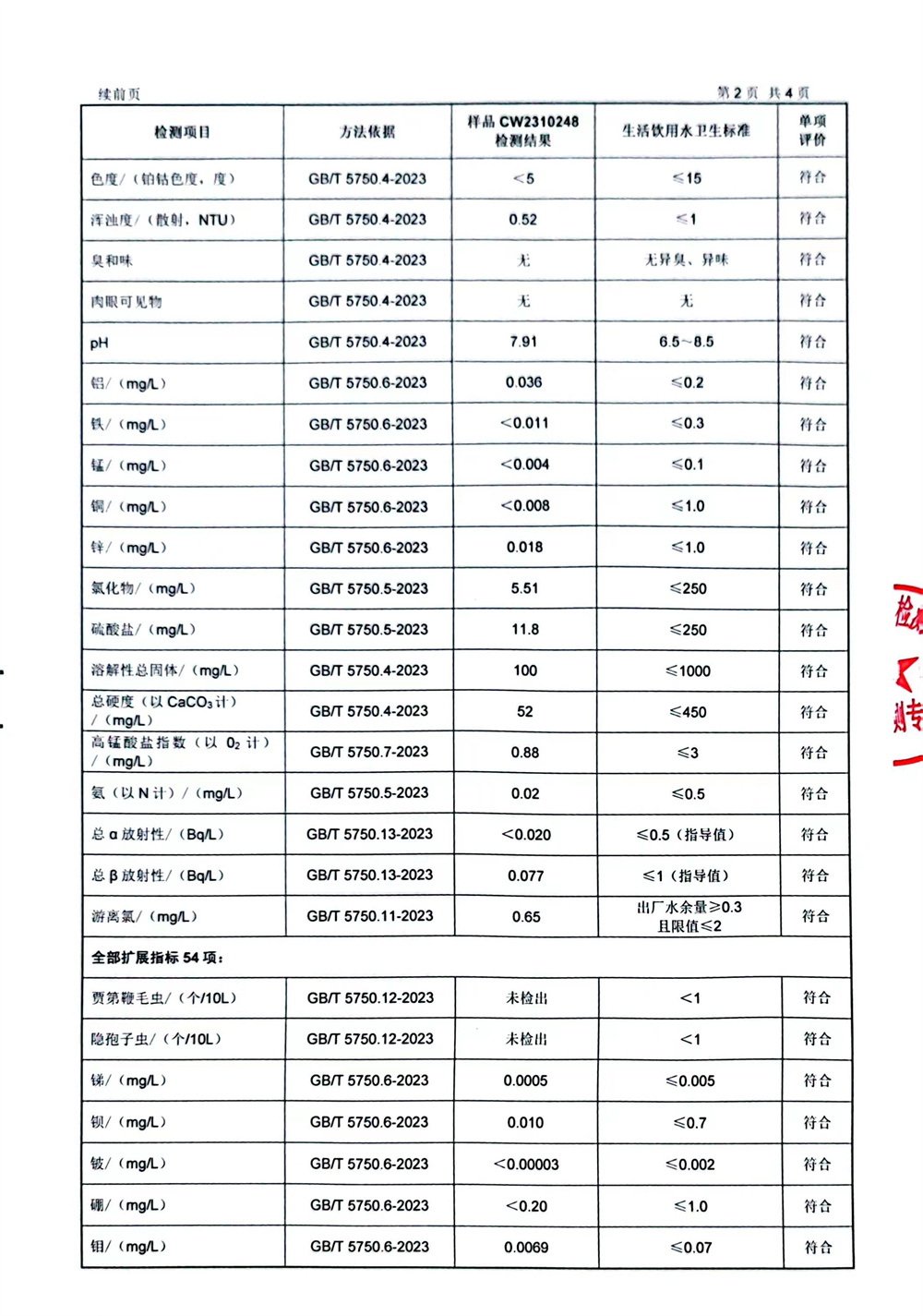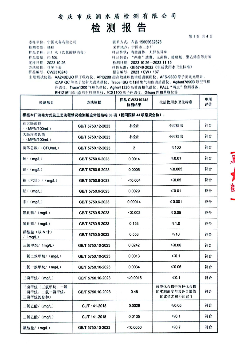 2023年下半年97項(xiàng)水質(zhì)檢測報(bào)告公示