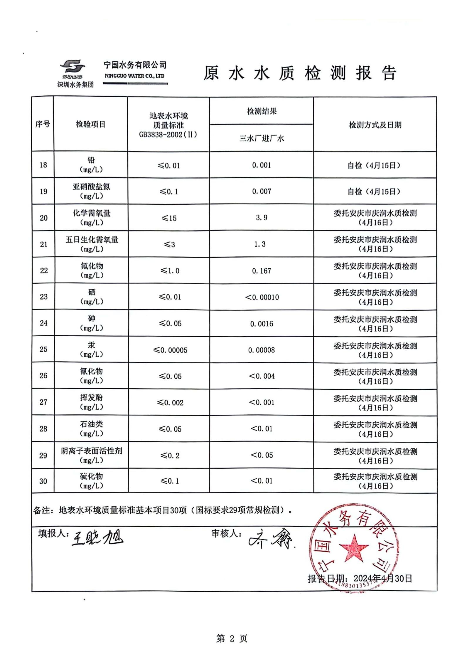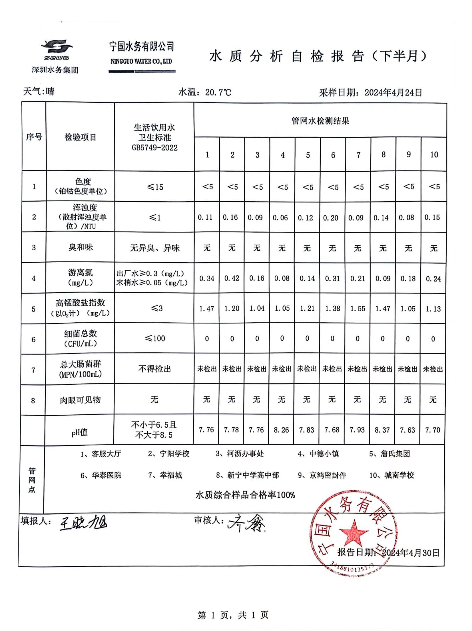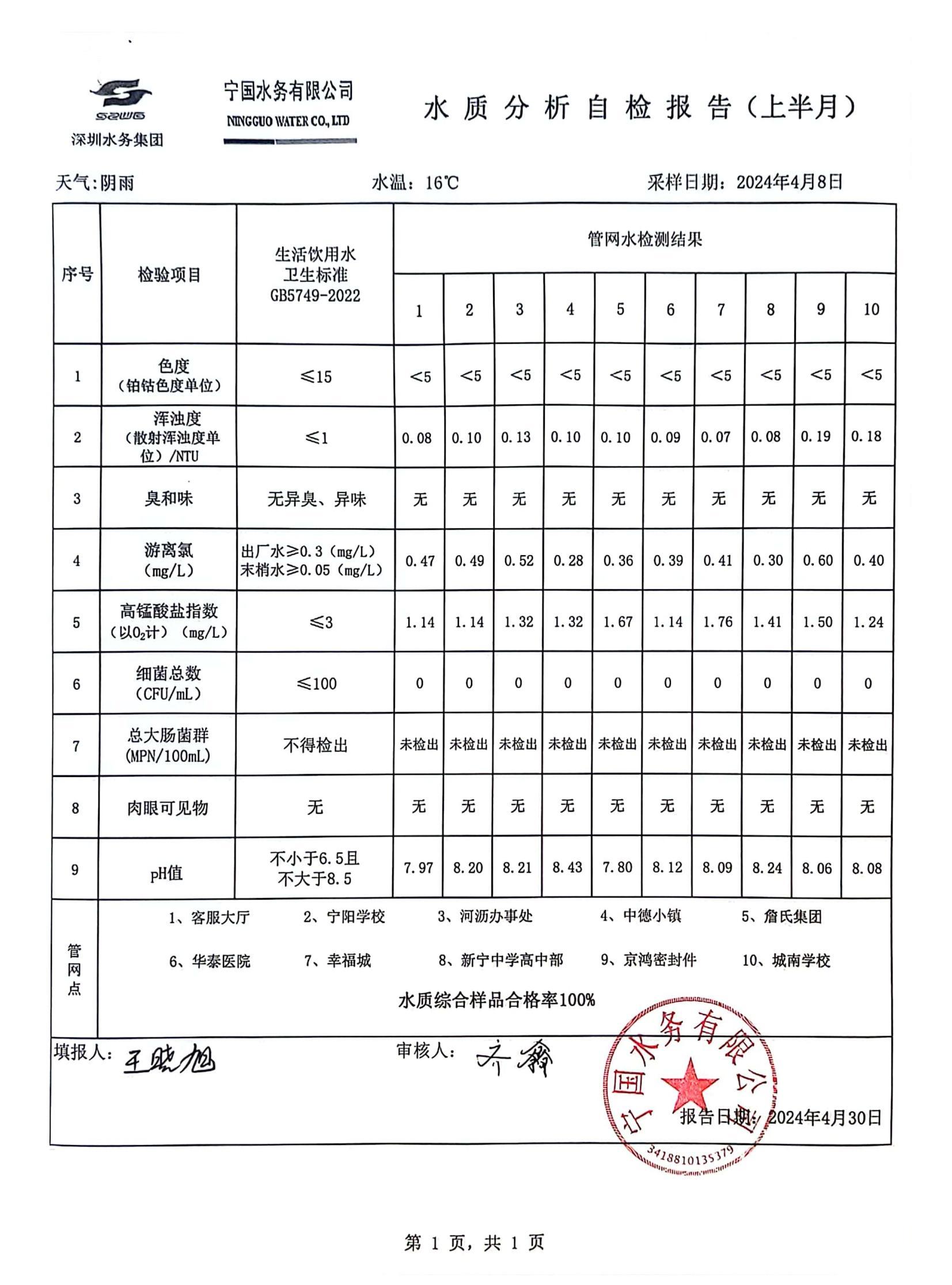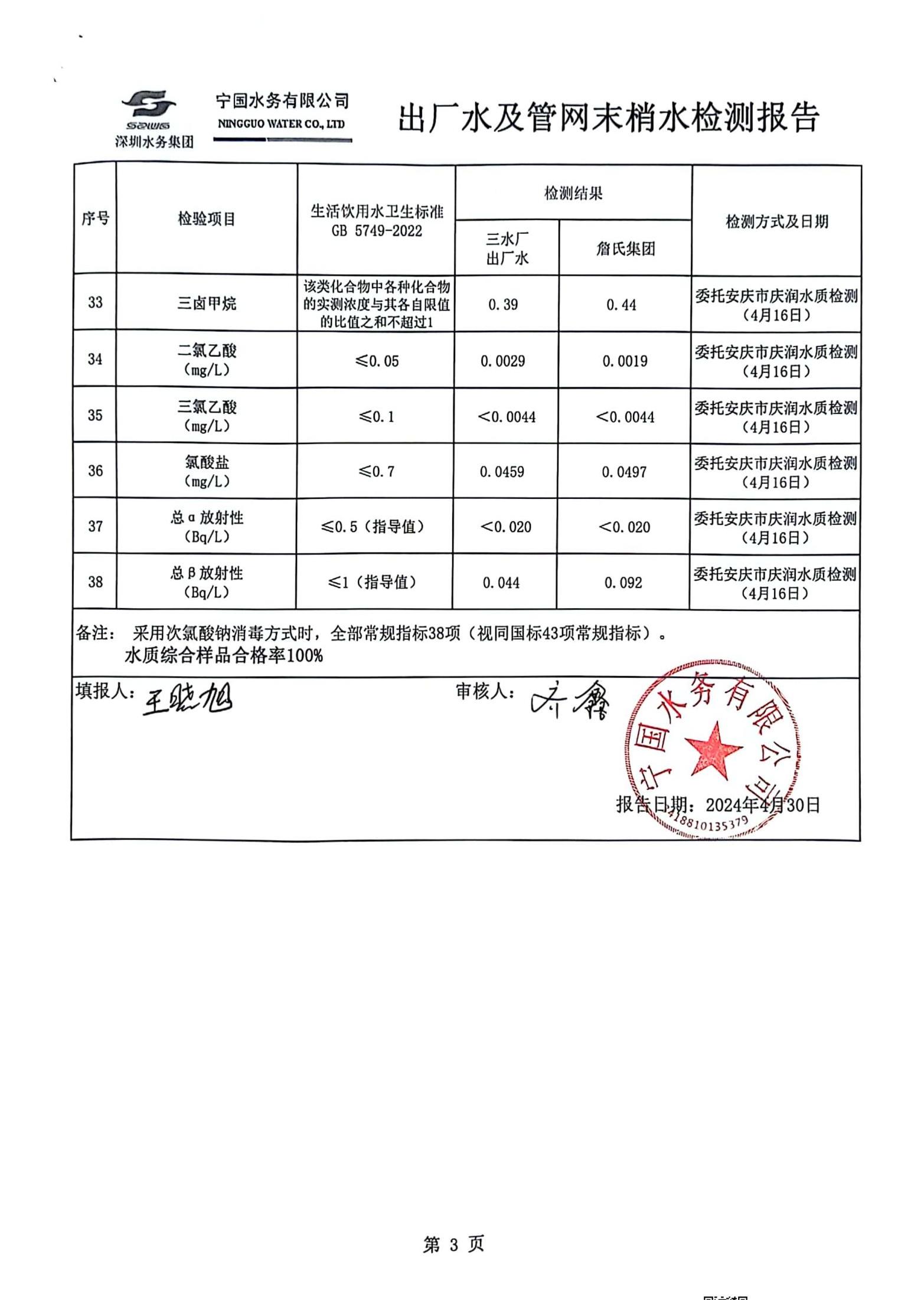 2024年4月份水質報告